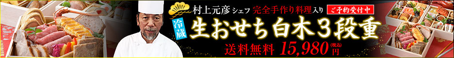 [冷蔵おせち]生おせち白木3段重 村上シェフの手作り重が入り、ロブスターからサーロインローストビーフ!
