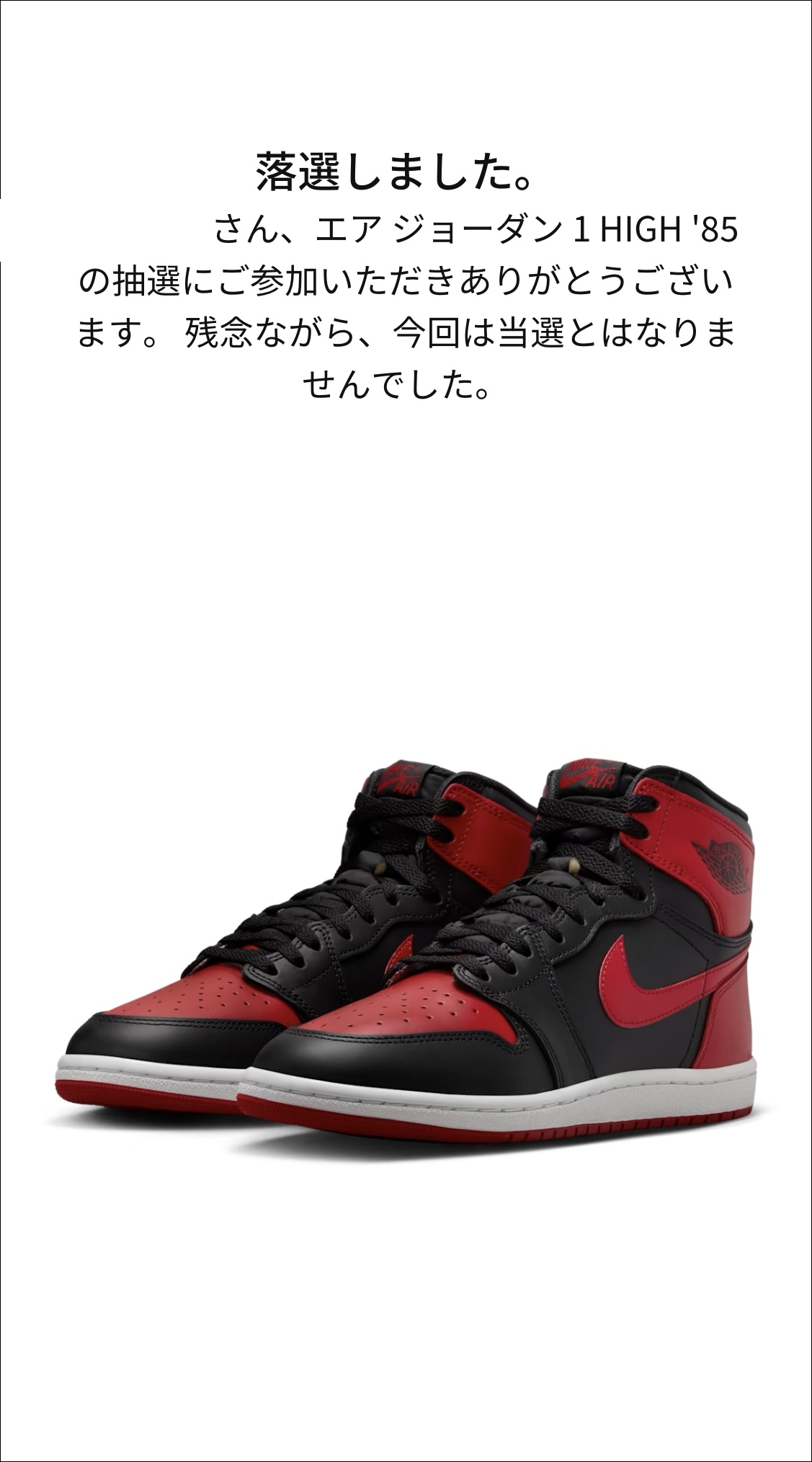 NIKE公式「SNKRS」で抽選にエントリーしましたが、ゲットならず。