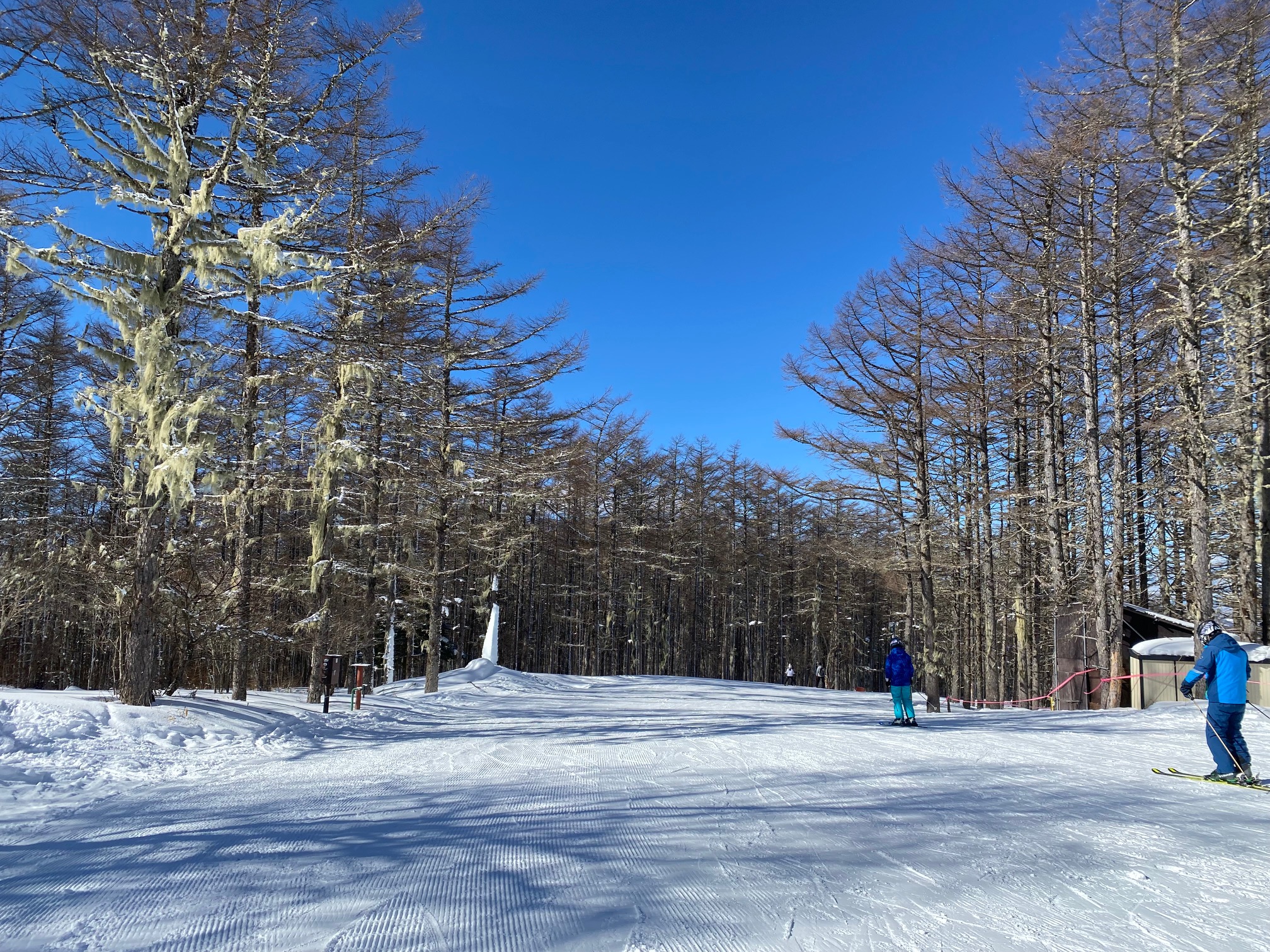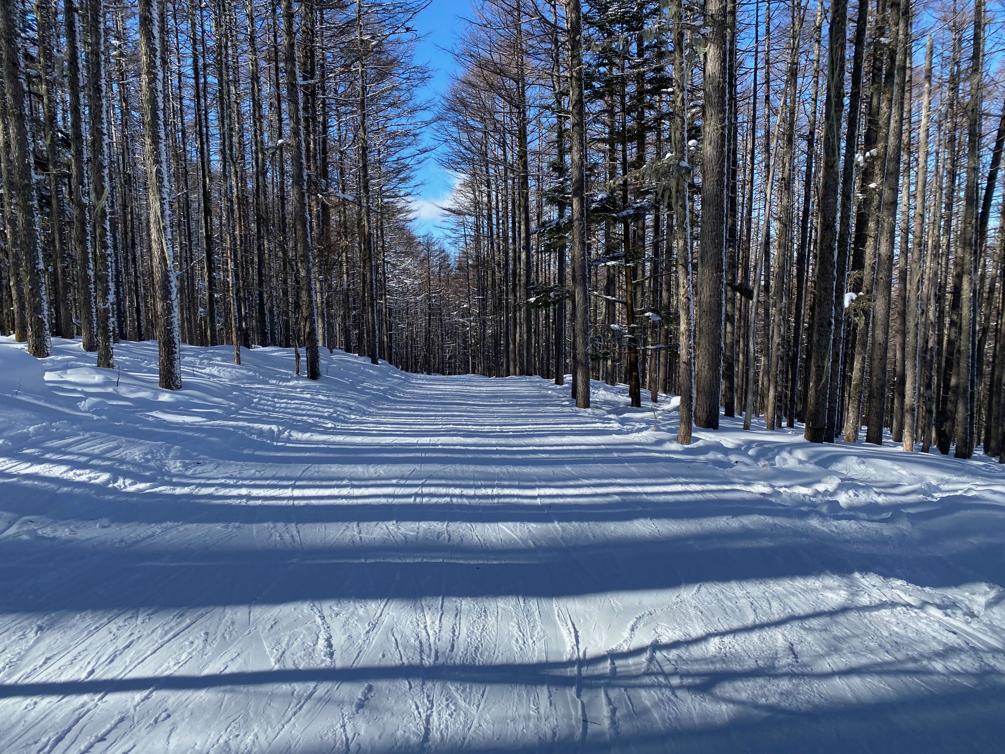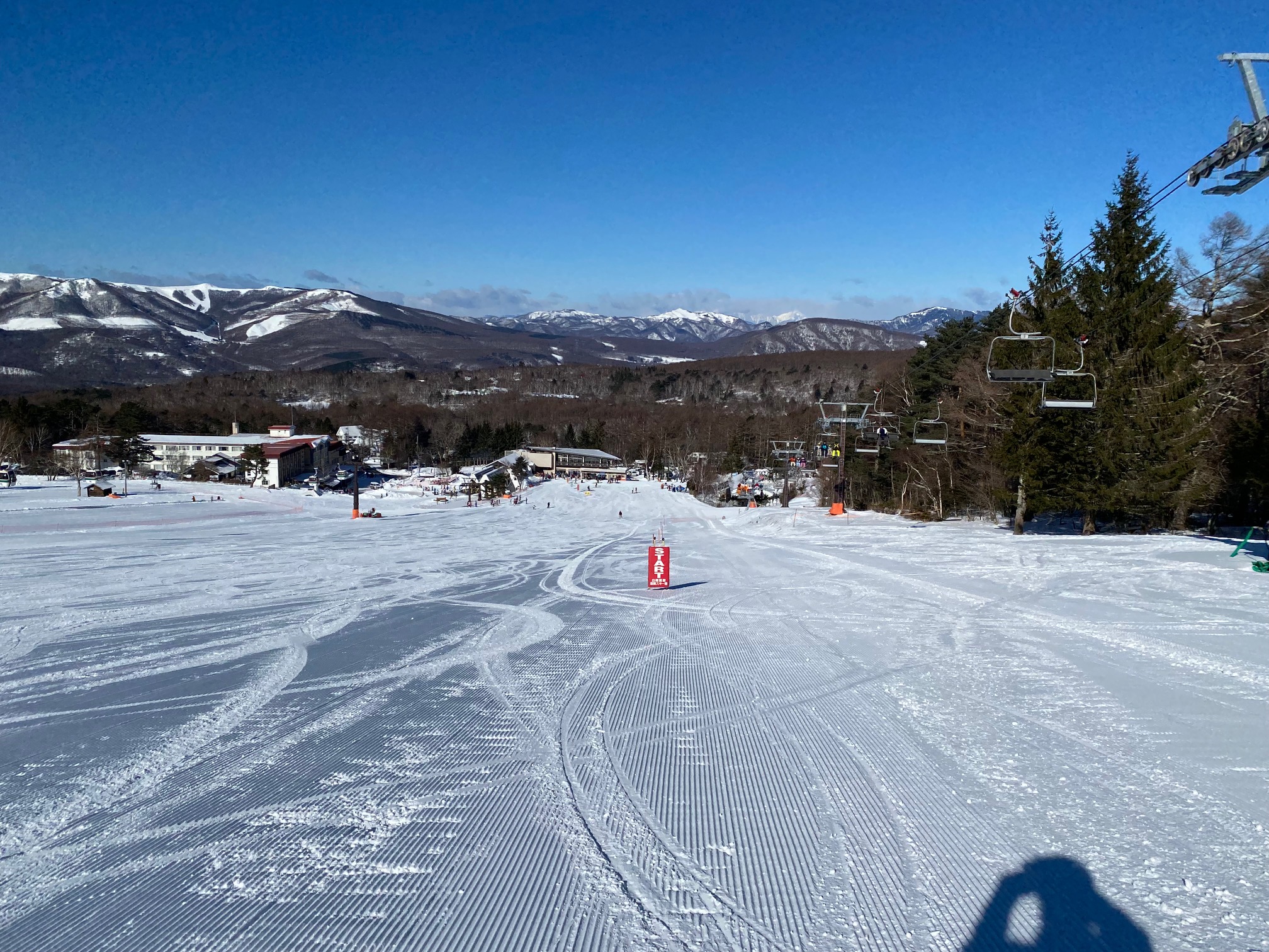 白樺高原国際スキー場は、ゲレンデサイズは小さめで、リフトの本数も少ないですが、コース自体は幅も広く、開放感のあるゲレンデでした。