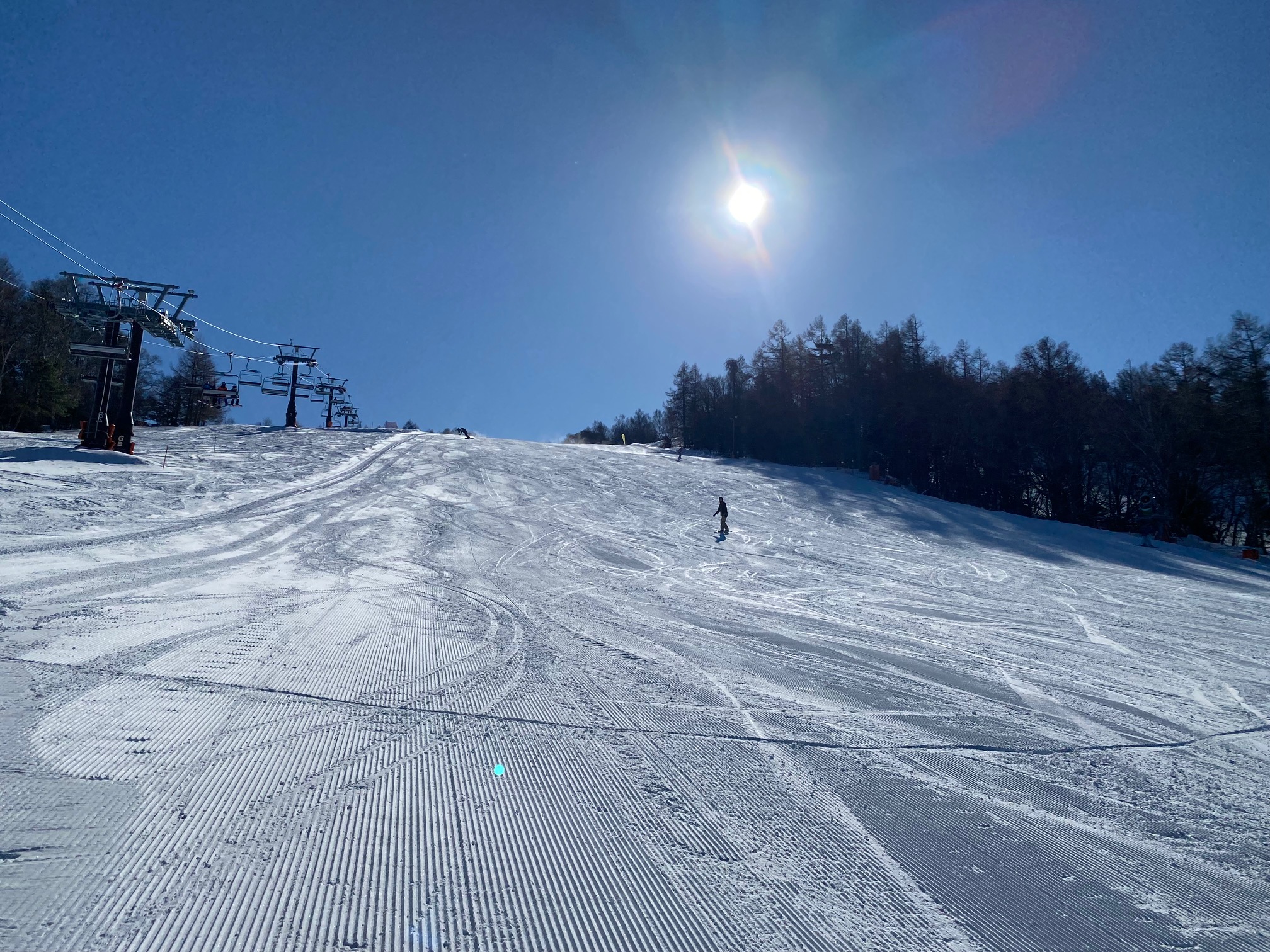 内陸のエリア、標高が高い、気温が低いということもあり、ハイシーズンは軽くてしっかり締まった雪質で、カービング・フリーランがしやすいスキー場です。