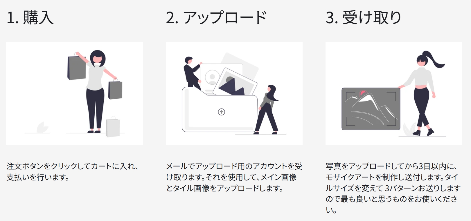 写真をアップロードしてから3日以内に、モザイクアートが制作されます。