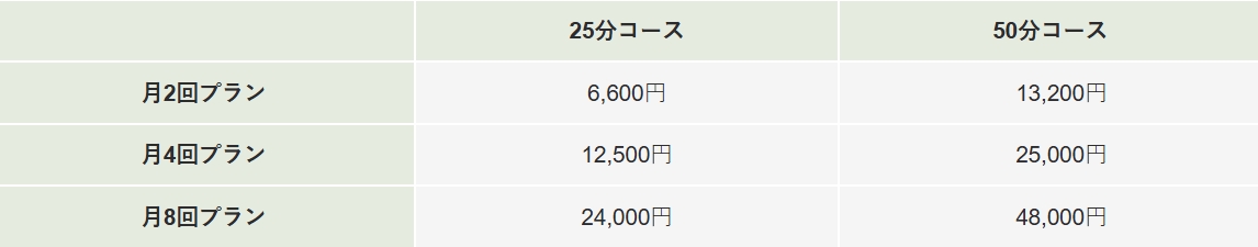 *月2回プラン: 25分コース6,600円、50分コース13,200円