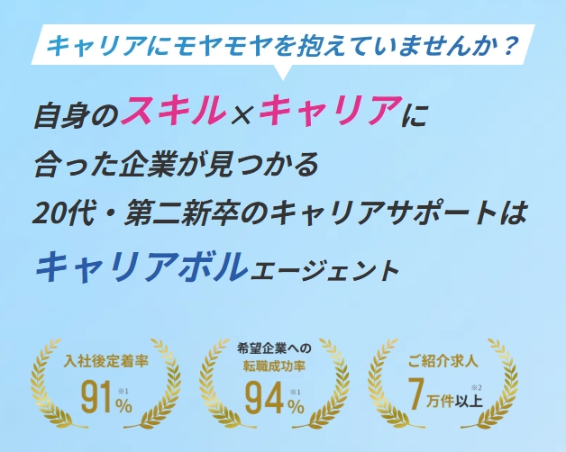 「キャリアボルエージェント」は、若手人材向け・第2新卒に特化した転職エージェントとしておすすめの選択肢の一つです。
