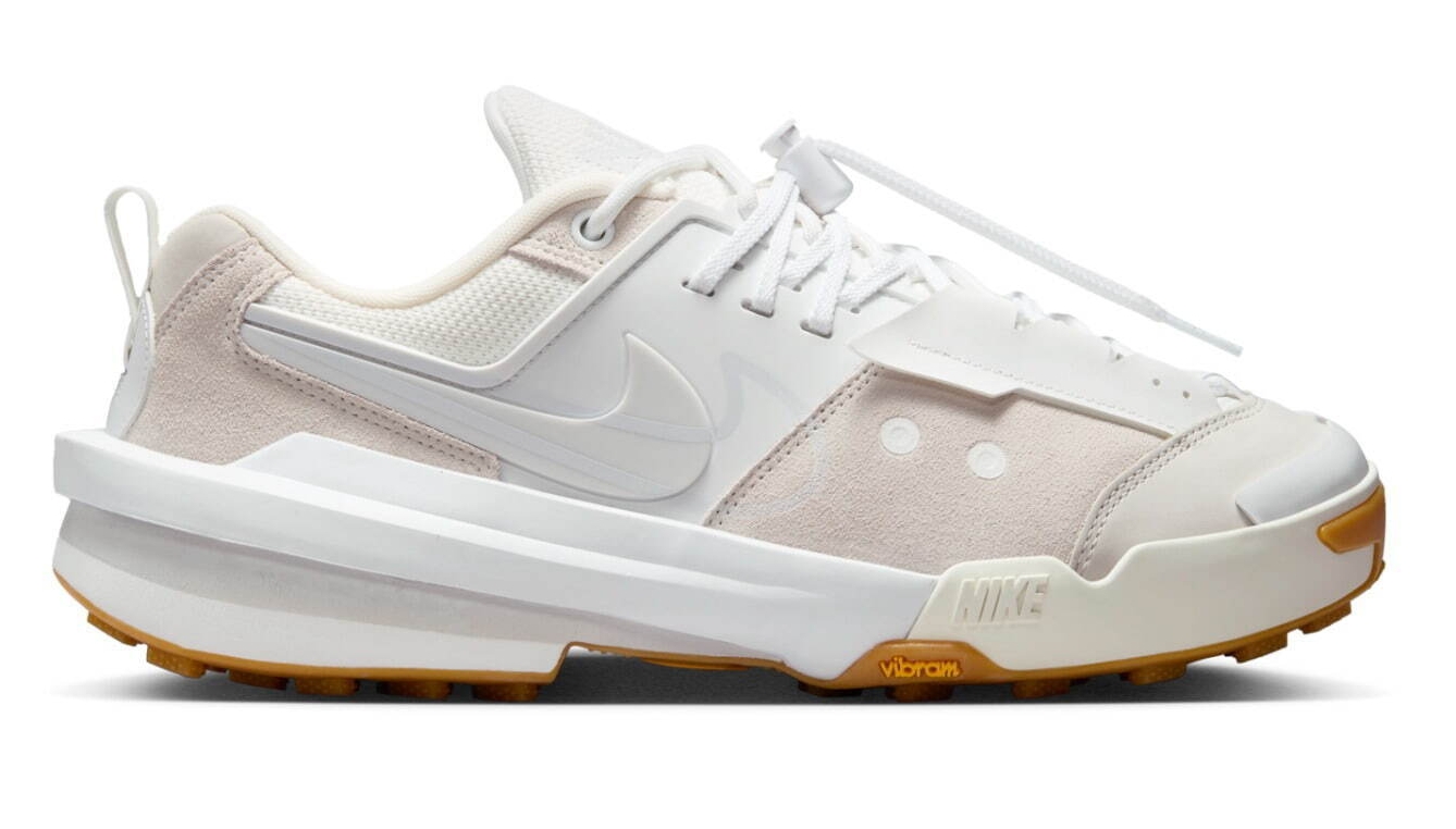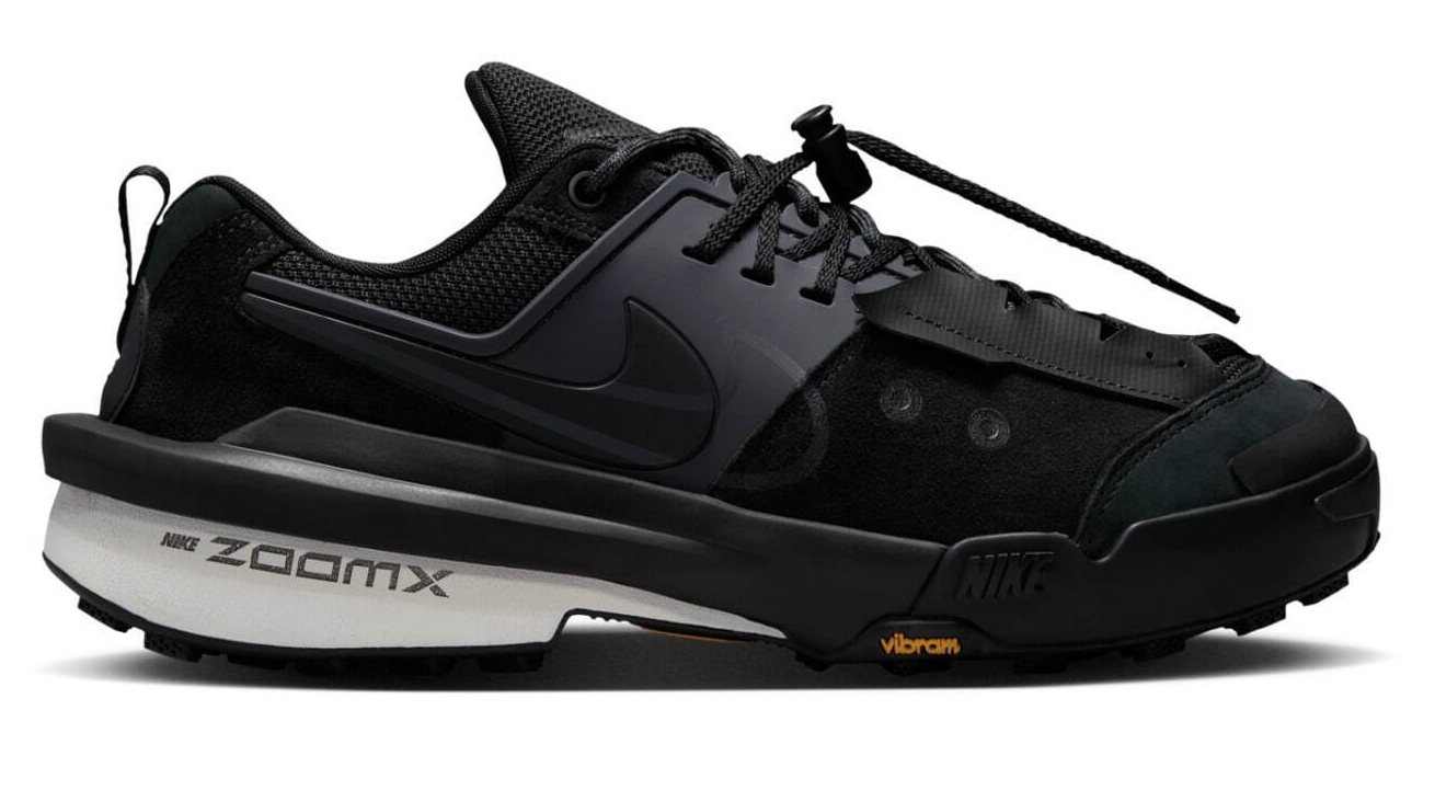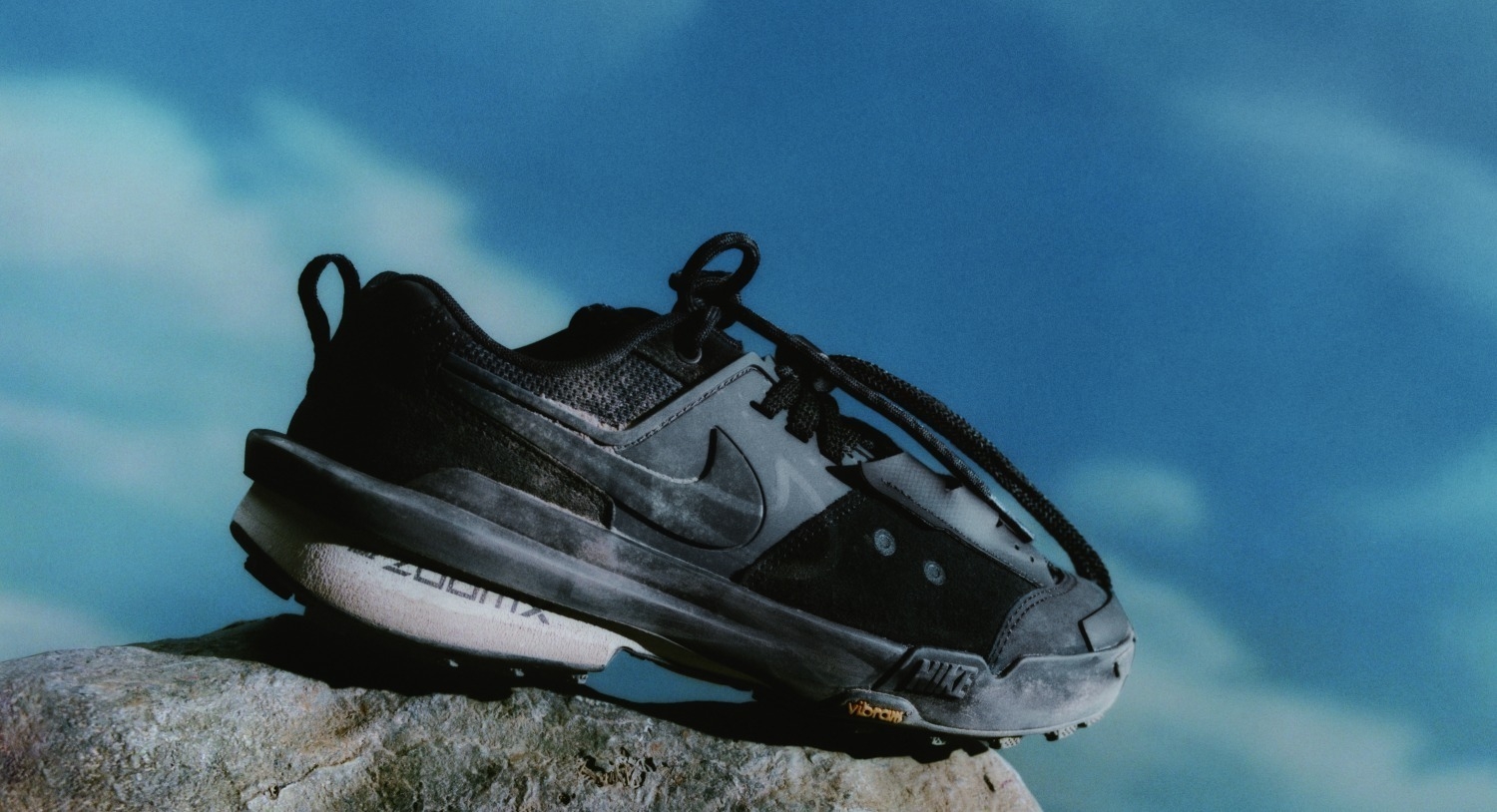 アッパーはNIKEのトレイルランニングシューズであるZegamaをベースに、メッシュ、スエード、レザーの異なる要素を組み合わせ、アウトソールはハイキングブーツのLava Domeから着想を得ている。ミッドソールには、NIKEのZoomXを採用しVibramソールを用いることで、ミニマルなフォルムでありながらも機能性と耐久性を備えた一足に仕上げた。シューズ外側側面にはコラボレーションを彷彿とさせるエンボスのスウッシュ、シュータンにはNIKE x sacaiの織りネーム施した。