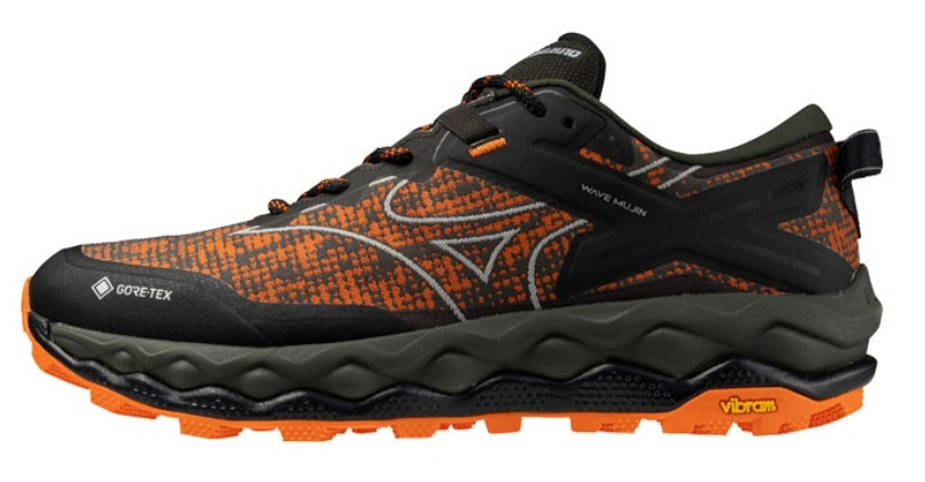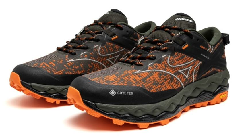 ミズノのトレイルランニングシューズ「WAVE MUJIN(ウェーブムジン)」をベースに、GORE-TEX(ゴアテックス)のアッパーと、Vibram(ヴィブラム)ソールを配置し、雨の日や他タフなアウトドアのコンディションでも快適に着用できるよう、アップデートされたディティールに仕上げています。