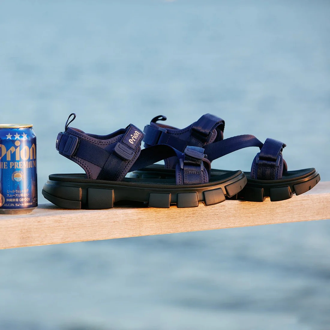 SHAKAの人気モデル「ZAMPER SF」をベースに、オリオンビールのプレミアム缶をイメージしたネイビーカラーとゴールドのアクセントが印象的な一足です。