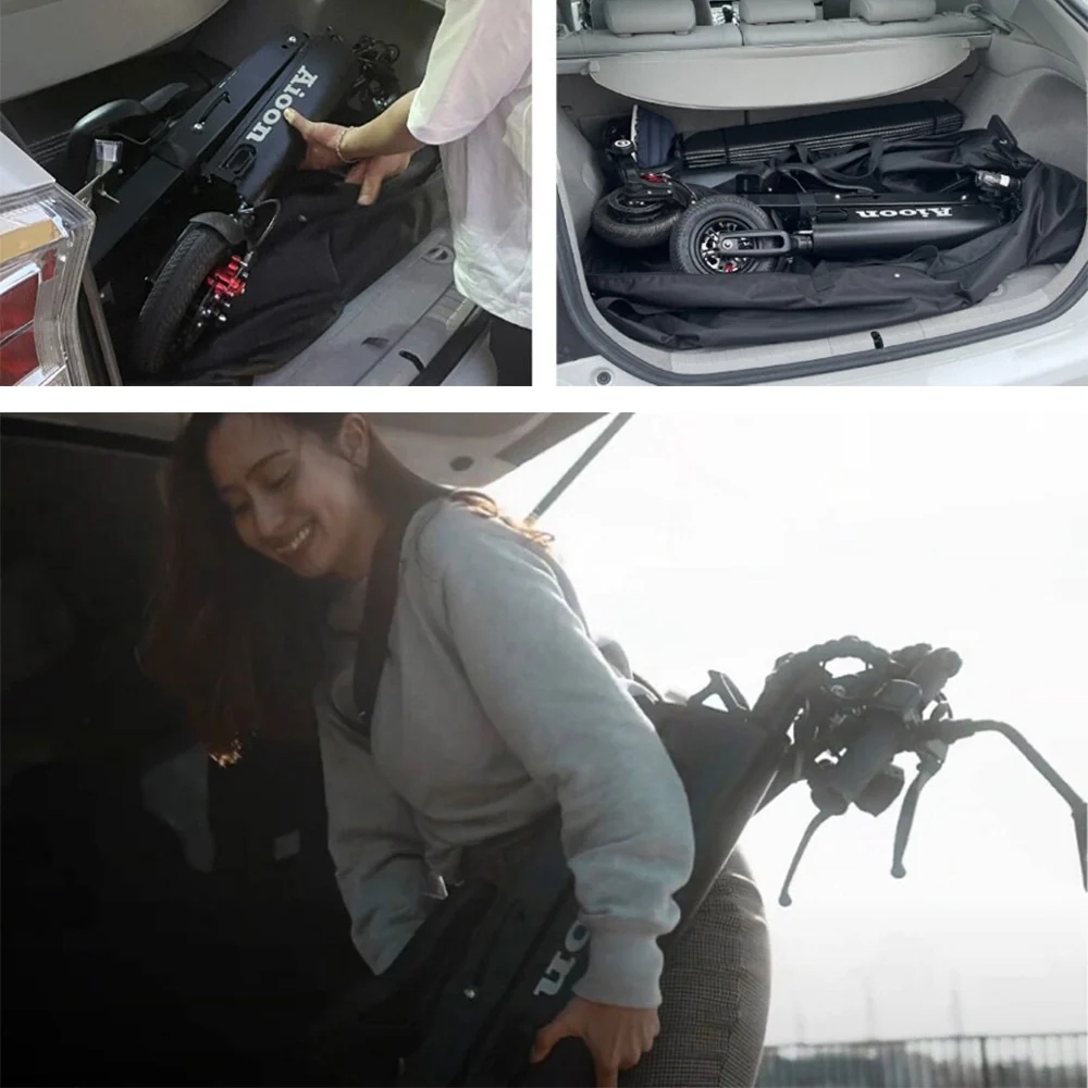また、3秒で折りたためるコンパクト設計で、折りたたみ後のサイズはL40×W26×H106cm、重さは16.5kgと軽量です。電車やバスに持ち込んだり、車のトランクに収納したりできるため、外出先でも手軽に使えます。折りたたみ機能と公道対応を両立したAioonは、新しい時代の快適な移動手段として注目されています。