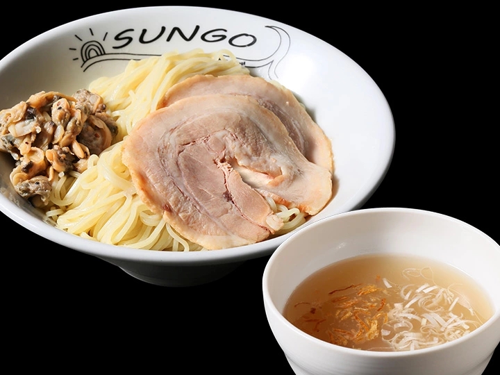らぁ麺 SUNGOは牛骨とアサリの旨味が重なり合う、淡麗塩つけ麺が看板です。