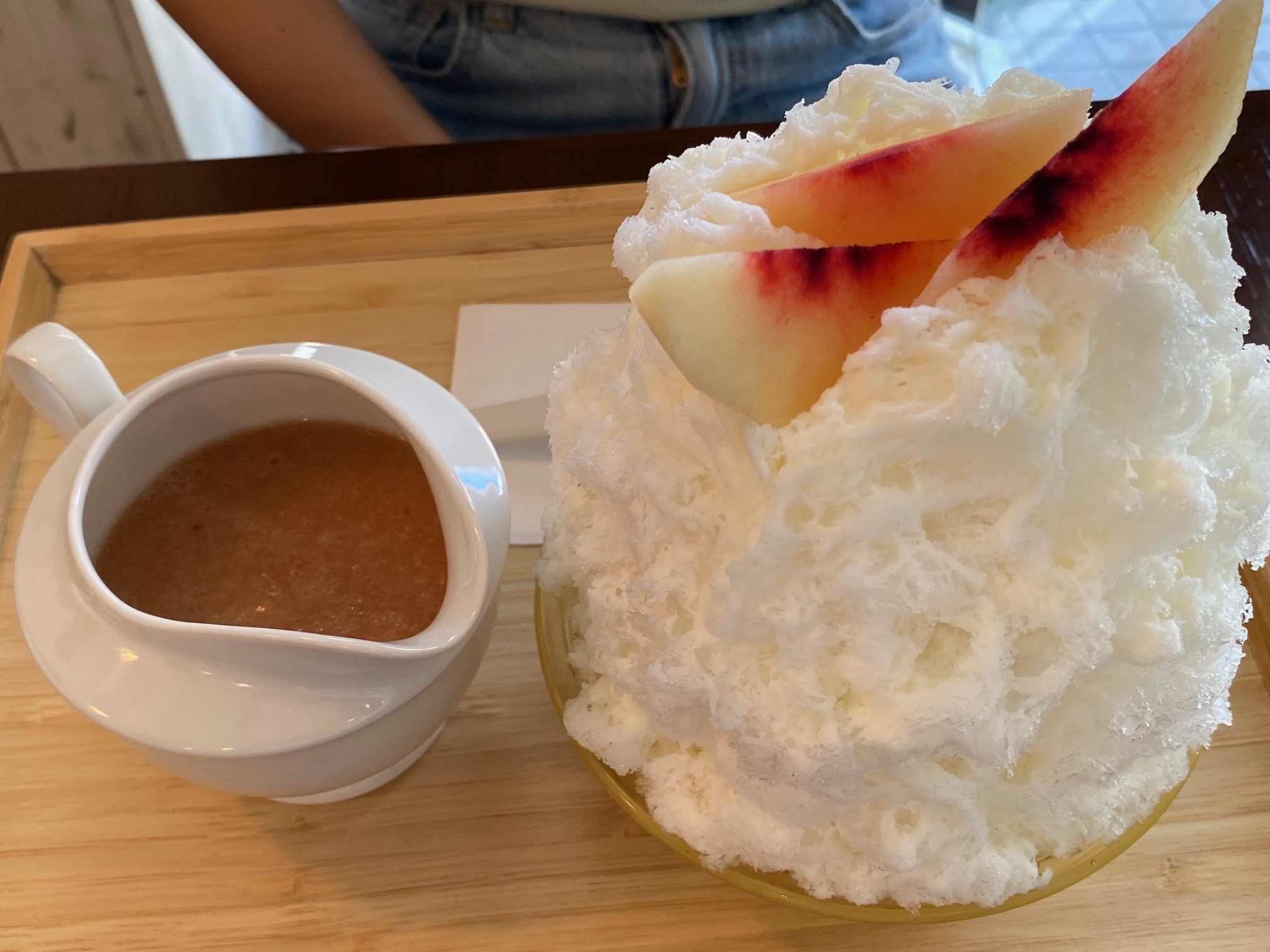 山梨県北杜市の天然氷を使ったかき氷は、ふわふわで口どけが良く、果実ソースとの相性も抜群でした。