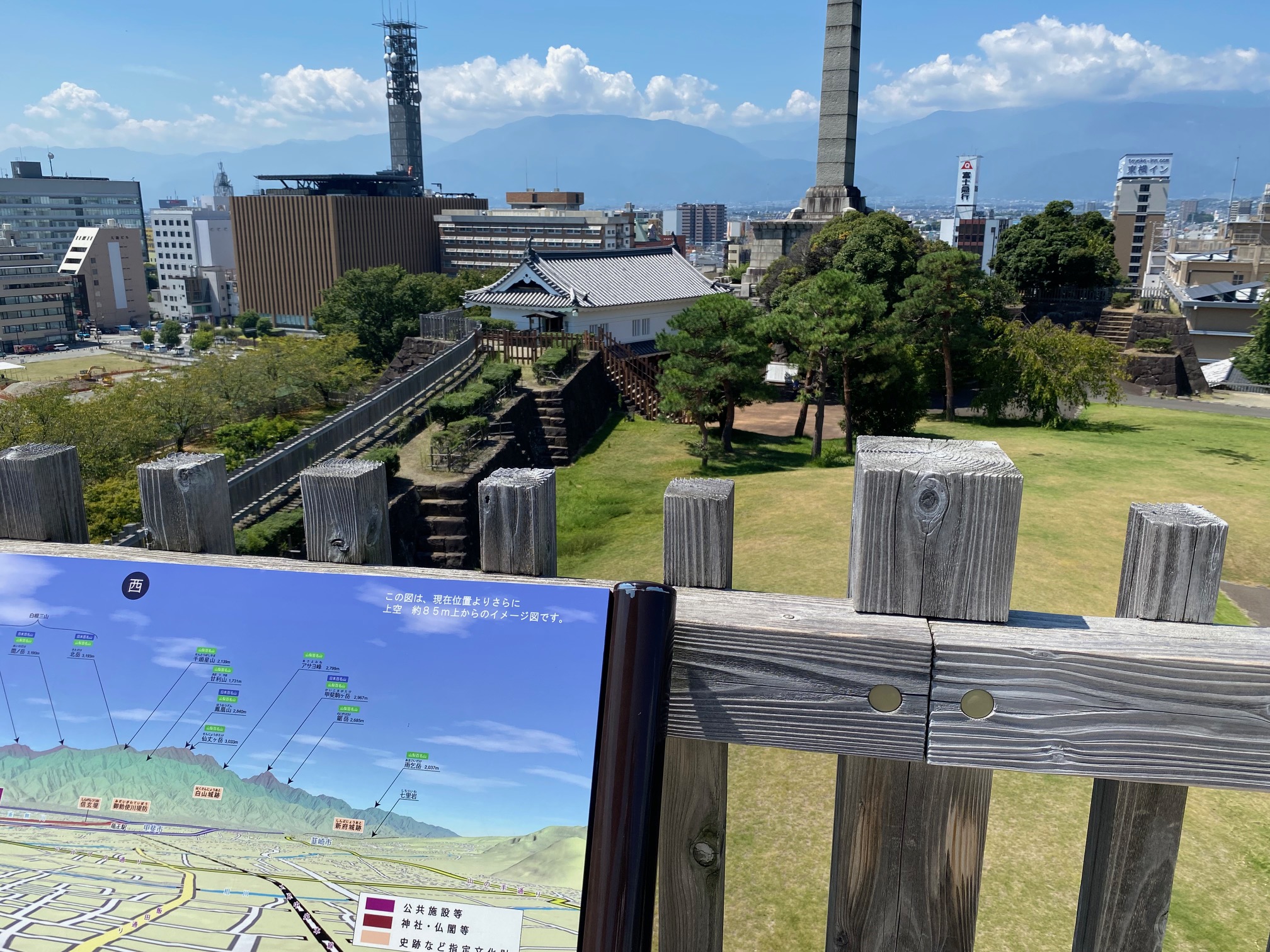 城跡の石垣や天守台からは、甲府盆地や富士山の美しい景色を望むことができます。