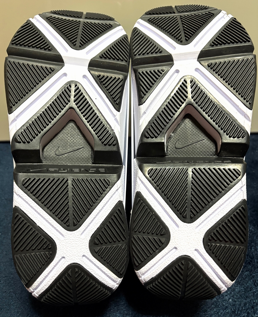 ホワイトメインのアッパーに、ブラックのロゴやソールのカラーリング。
