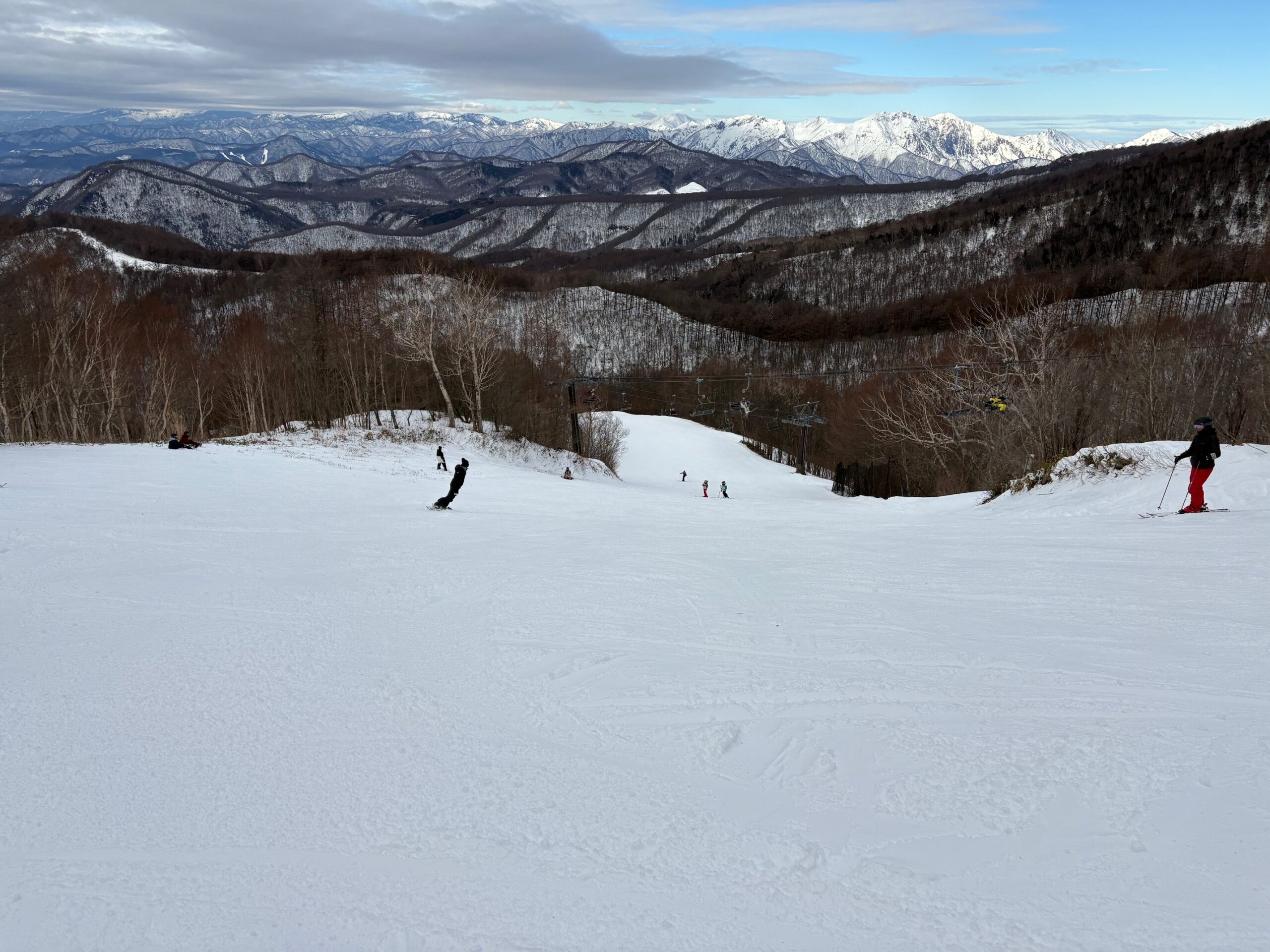 センターハウスが充実していたり、初級・中級のコースもある程度あるので、初心者の方やファミリーでも楽しめると思いますが、ゴンドラ・ロープウェイが無かったり、ゲレンデ上部はスキーヤーメインの上級者向けのコースだったりするので、コース選択は注意が必要です。