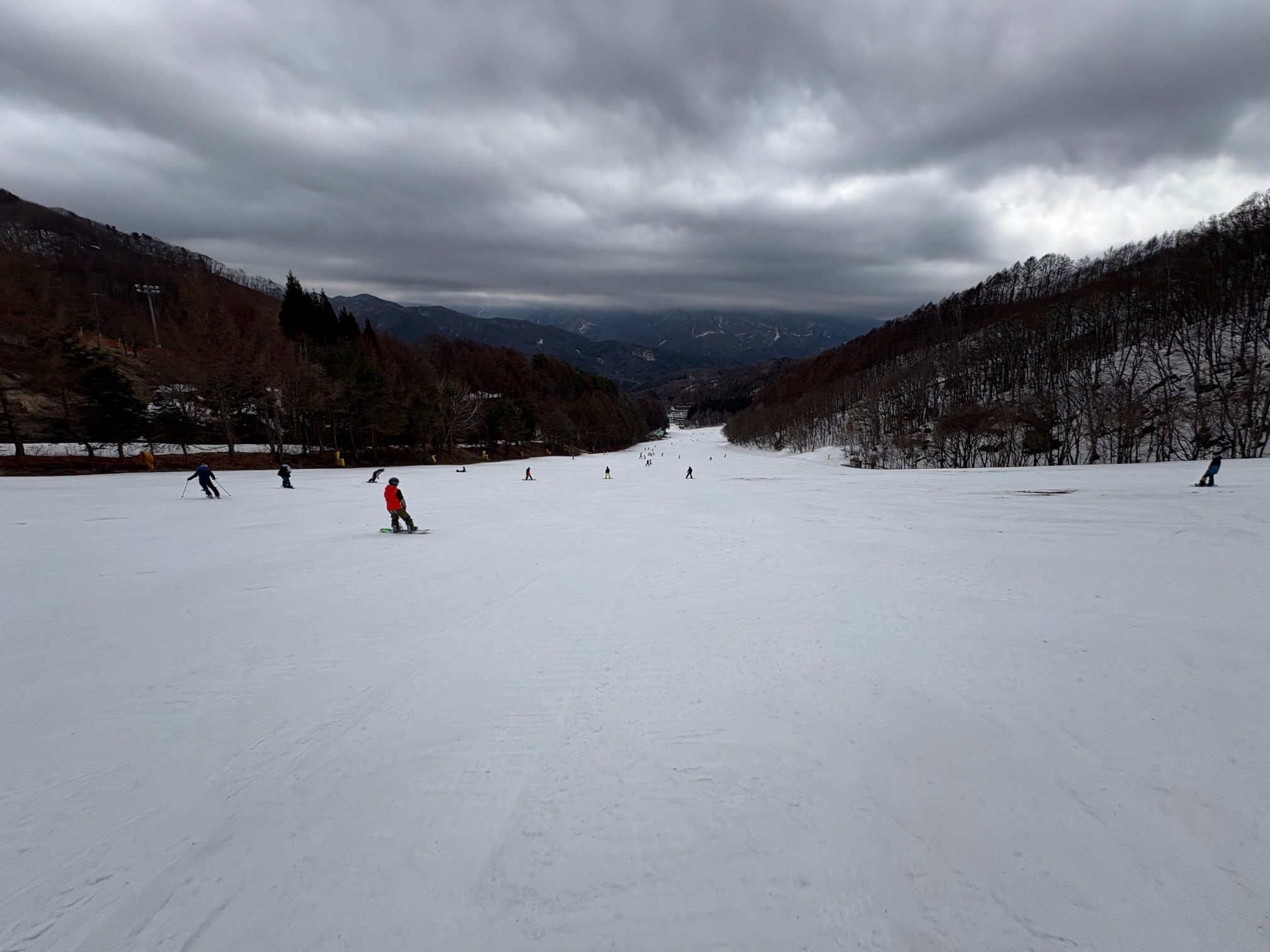 斜度がキツめの部分や、フラットな部分もありますが、コース幅も広く滑りやすいコースです。