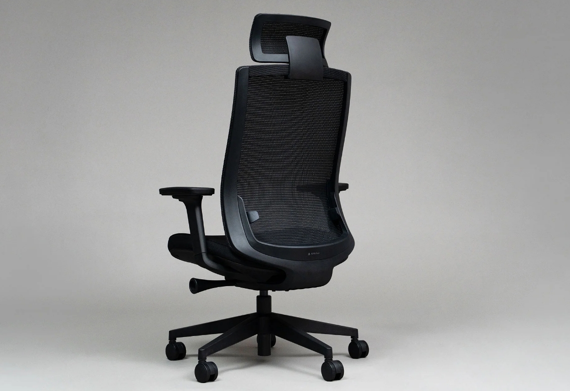 人間工学に基づいたエルゴノミックデザインとランバーサポートによる姿勢維持のしやすさ。高密度モールドウレタンフォームやメッシュ素材を使った座り心地と通気性。座面の高さ、アームレスト、ヘッドレスト、リクライニング、座面前後調節といった豊富な調節機能。そして、モノトーンでまとめられたミニマルなデザイン。これらが、AIMchair(エイムチェア)の主な特徴です。